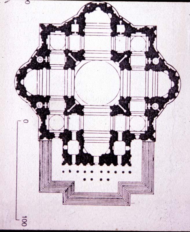 podział fasady kolumnami lób pólkolumnami przechodzącymi przez wiecej niż jedną kondygnację