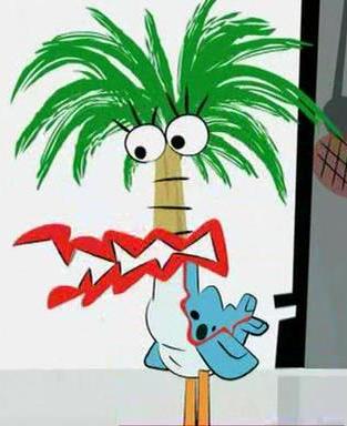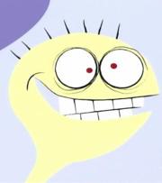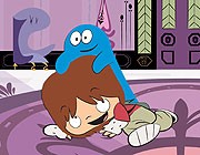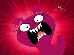Mała różowa postać która kocha się w Bloo