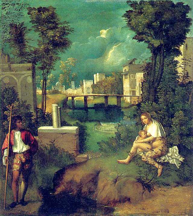 giorgione, burza, olej