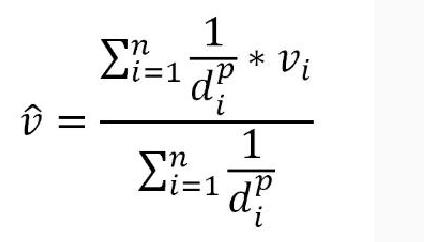 Przedstawiony wzór pozwala na estymację wartości w danym puncie na podstawie wartości w punktach sąsiadujących ( metoda IDW) Ustosunkuj się do stwierdzenia;